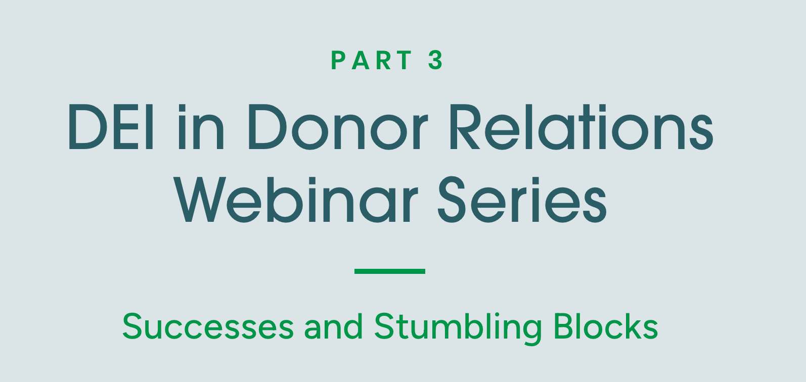 Over the past three years, our team has been leaning into tough conversations and encouraging nonprofits everywhere to take action when it comes to implementing diversity, equity, and inclusion practices in their work. In Part 3 of our DEI Webinar Series, we'll explore common challenges and highlight the work of those who are creating meaningful change in our industry.