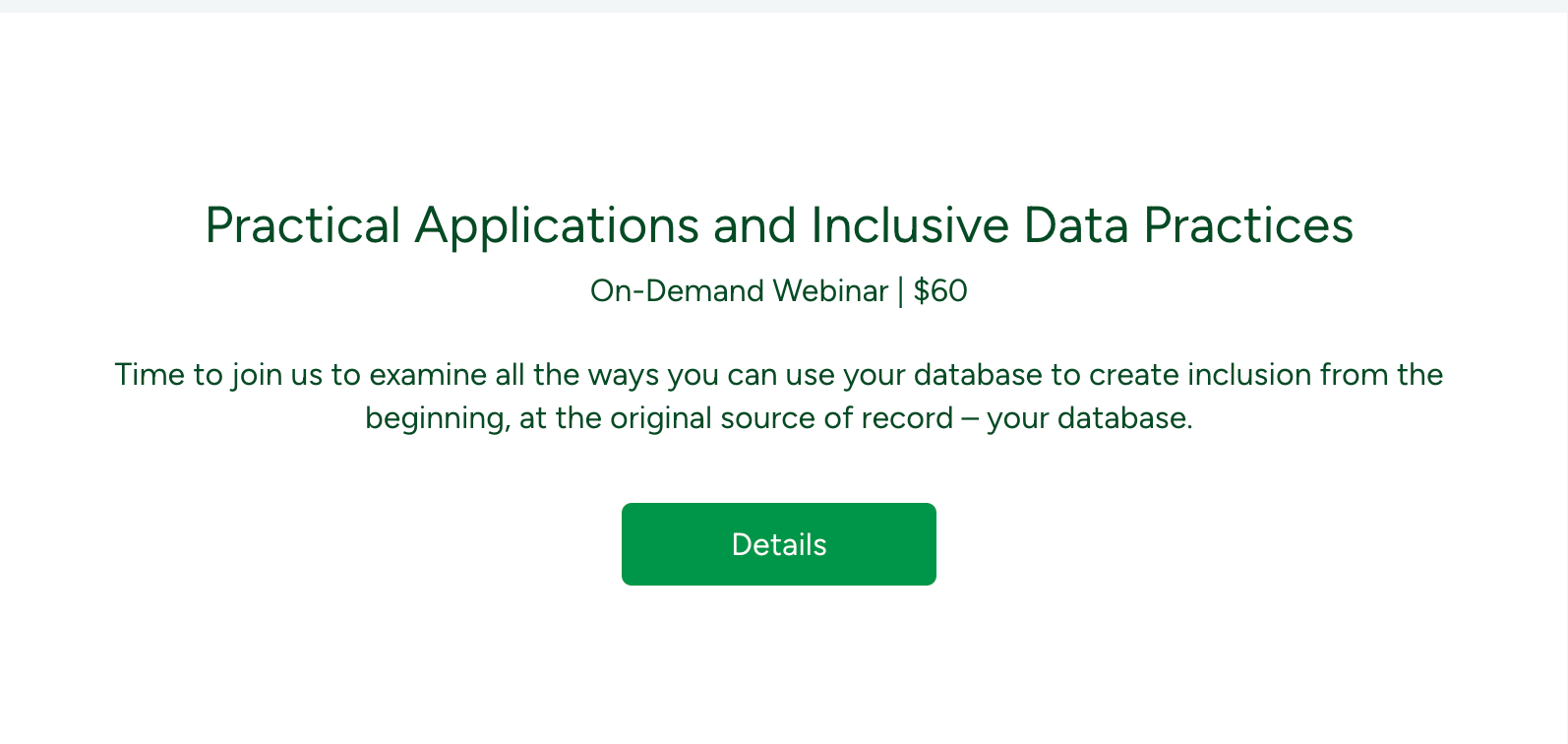 Time to join us to examine all the ways you can use your database to create inclusion from the beginning, at the original source of record – your database.